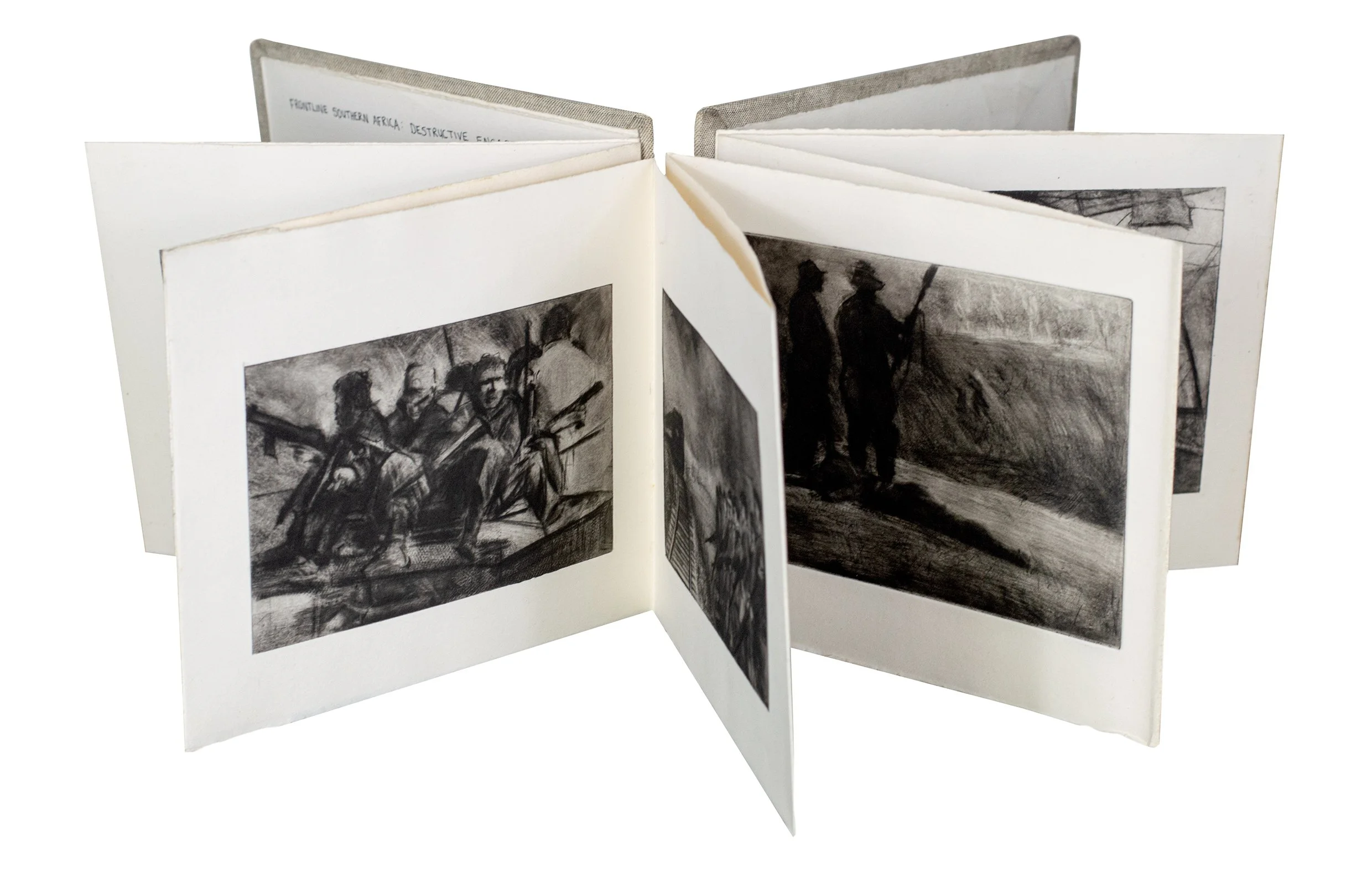 When I was in Boston during the State of Emergency in South Africa, I became obsessed with the artists book as a democratic force. Books were banned because books were powerful as they were seen as a threat to the state. My work took on more and more of a documentary shout-out, and I called my Masters show State of Emergency (1988). From making small books, I developed larger friezes spanning a narrative, until they became standing screens - partly due to my frustration of communicating the realities in South Africa at the time, and to force the art community around me in Boston to try and address my work as something beyond merely the painterly or seductive surface of a print.